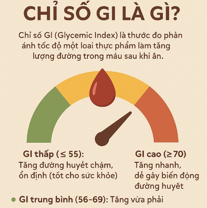 Chỉ số GI (Glycemic Index) là thước đo phản ánh tốc độ một loại thực phẩm làm tăng lượng đường trong máu sau khi ăn.